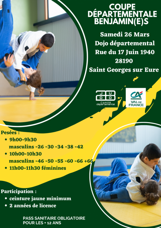 Dojo Départemental, rue du 17 juin 1940 28190 Saint Georges sue Eure - de 09h à 14h